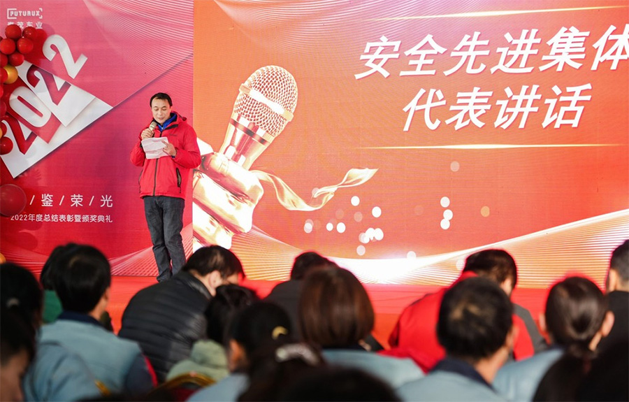 After the commendation session, Mr. Yang Jing, the human resources manager, reviewed and delivered a speech on the work of 2022 in terms of safety management and cultural evaluation, and read out relevant safety management decisions.